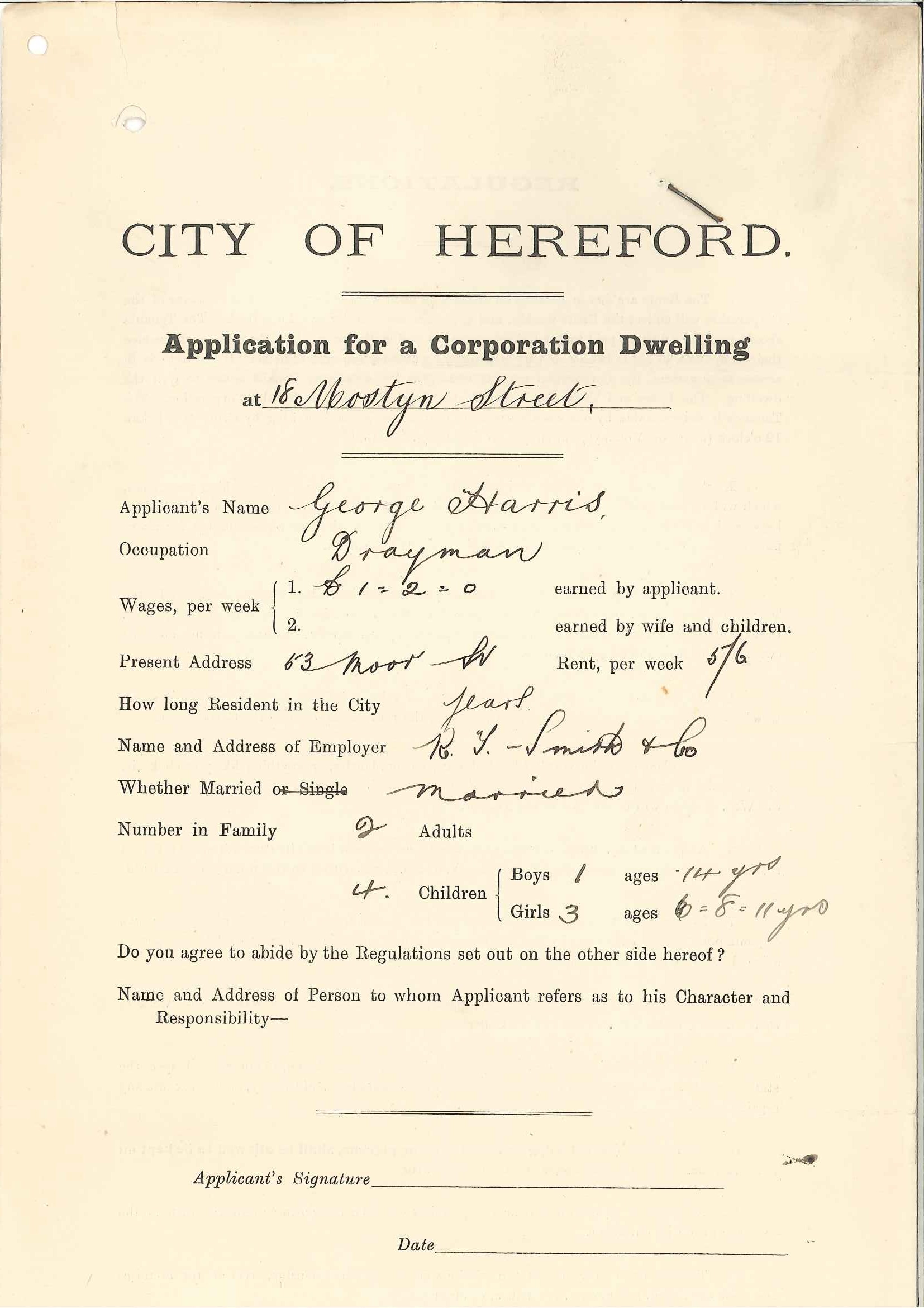 We stumbled across an old tenancy file recently for a house in Mostyn Street, Hereford, first opened during the early years of the First World War. Mr and Mrs James moved in to their new house on 6th March 1915 – four days before the start of the battle at Neuve-Chappelle in which 22,000 men lost their lives over two days. The tenancy agreement reflects the concerns of the time. If anyone has an infectious disease the tenant “must agree to allow the person affected to be removed to Hospital…” And “Tenants are not allowed to paper, paint, or drive nails into the walls or woodwork without the consent of the Collector.” The Collector was a powerful man.